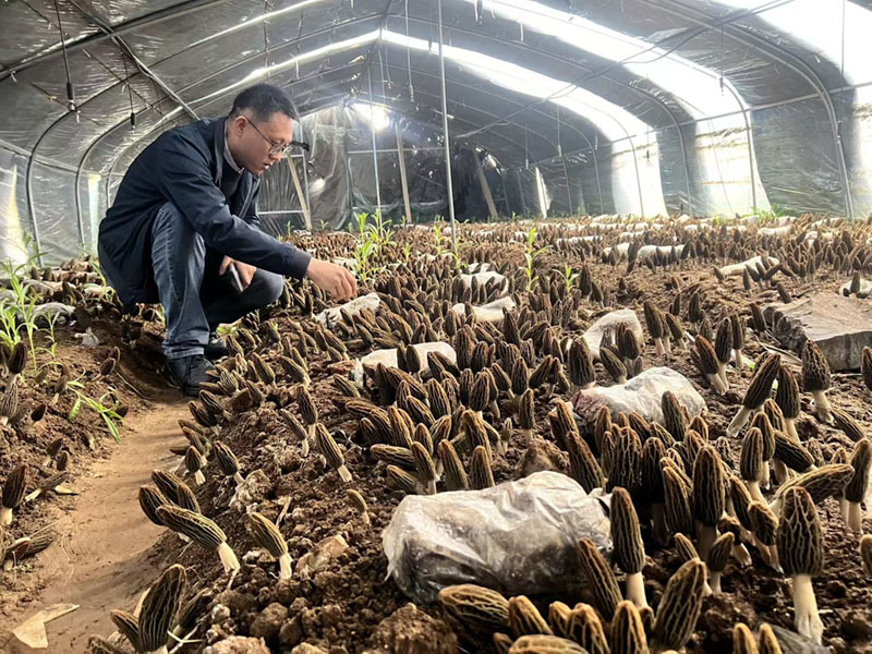 在技术专家团队的指导下,周方华总经理已熟练掌握温、光、水、气等关键环境因子的调控技术,成长为本地羊肚菌种植领域的技术骨干和乡村一线服务的重要力量。如今,他不仅实现了自身产业的稳定发展,还积极带动周边农户共同致富。